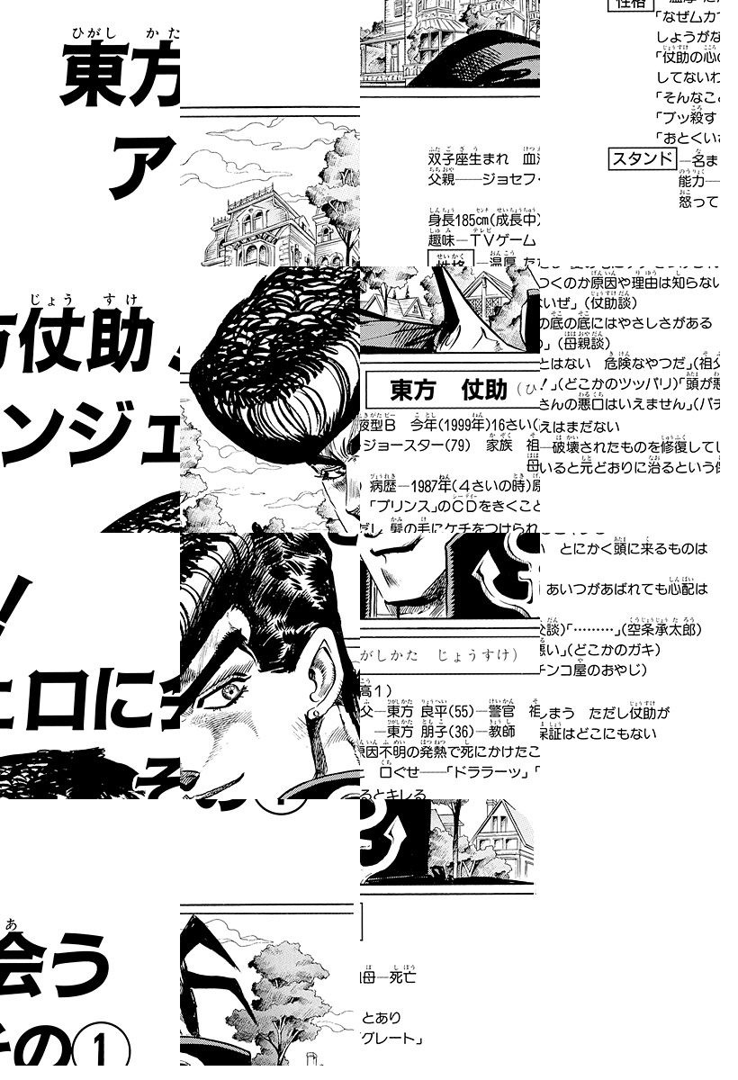 <完結済み>杜王町に住む高校生、東方仗助。見かけによらず気弱な性格だが、自慢のリーゼントをけなされると途端に豹変、スタンド能力を発現させる。ジョナサンの身内という彼を訪ねた空条承太郎は、そのスタンドを目にし、仗助にそして杜王町に迫る危機を察知するが…!?