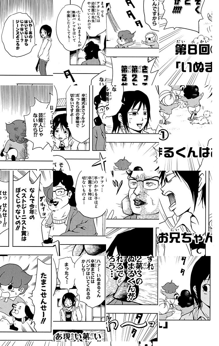 <完結済み>またたび幼稚園すみれ組に新任のたまこ先生が赴任してきました。すみれ組ではいつも元気でいつも下半身丸出しのいぬまるくんが、楽しい問題を起こしています!! 全てをさらけ出す新感覚ギャグ漫画!!