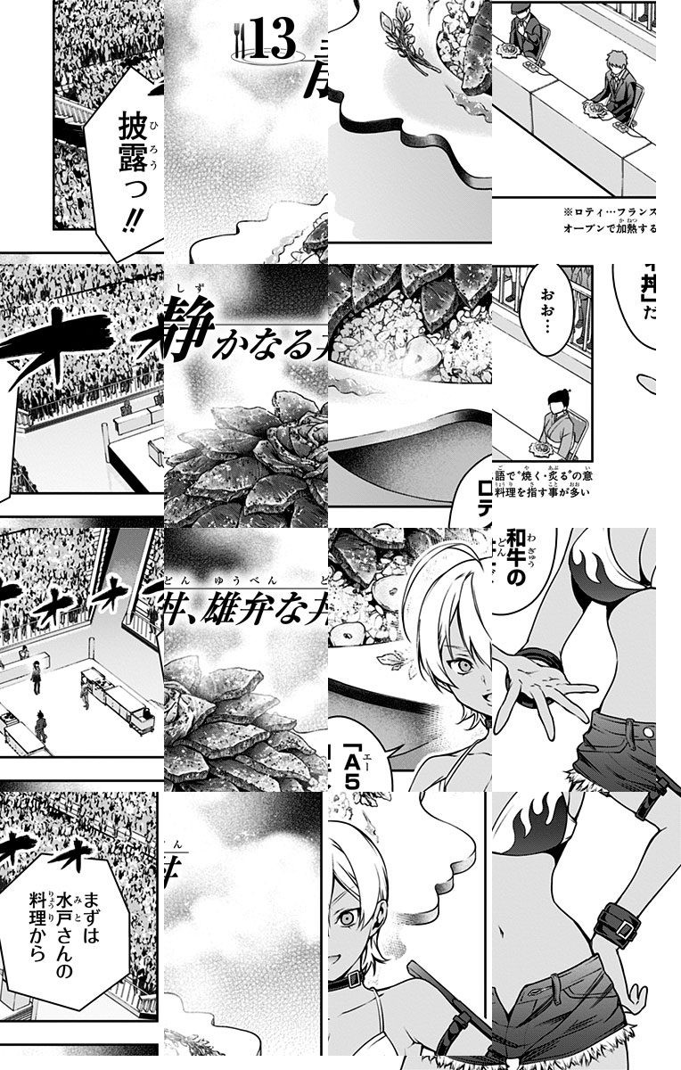 <完結済み>下町の定食屋を営む中学生・幸平創真。目標である料理人の父を越える為、創真は修業の毎日を送っていた。しかし突然、料理学校への編入話を告げられ…!? 創造する新料理マンガ、ここに開演!!