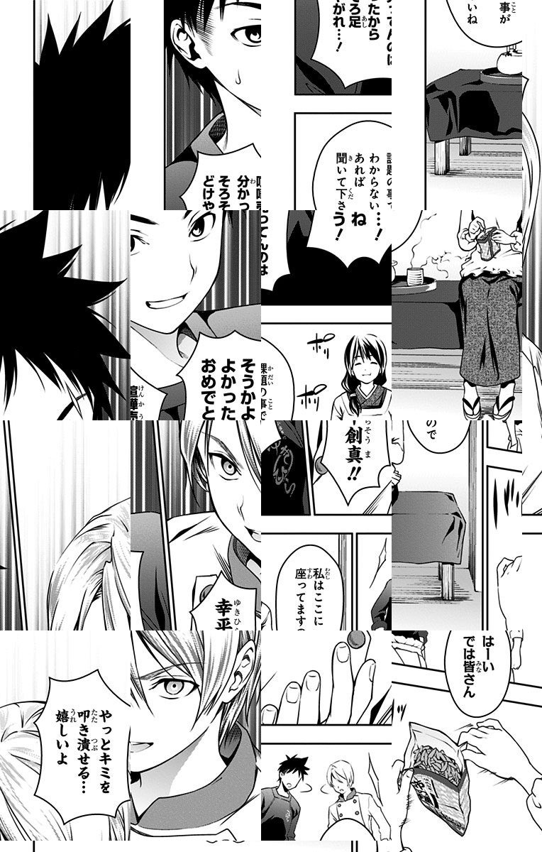 <完結済み>下町の定食屋を営む中学生・幸平創真。目標である料理人の父を越える為、創真は修業の毎日を送っていた。しかし突然、料理学校への編入話を告げられ…!? 創造する新料理マンガ、ここに開演!!