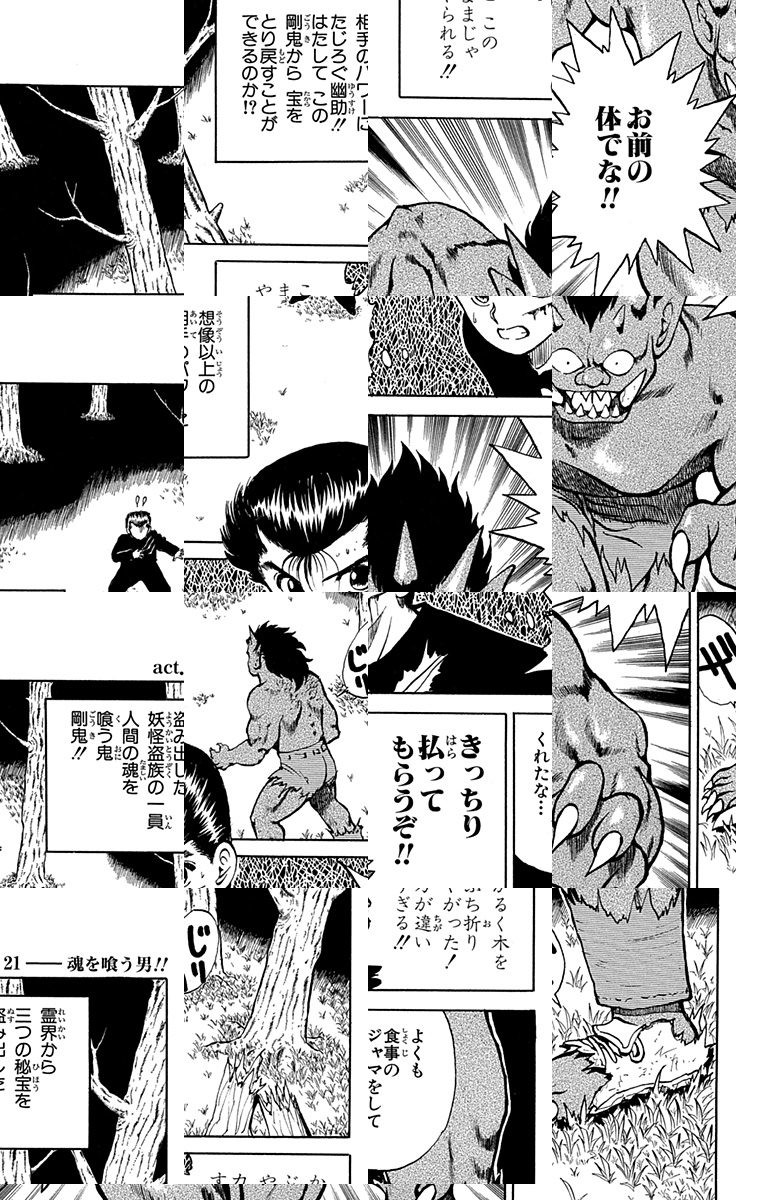 <完結済み>教師も手をやく不良の浦飯幽助。ある日子供を助けて事故にあい、幽霊になってしまう。予定外の死に閻魔大王は、生き返るための試練として、人の心を映す霊界獣の卵をかえすことを命じるが…!