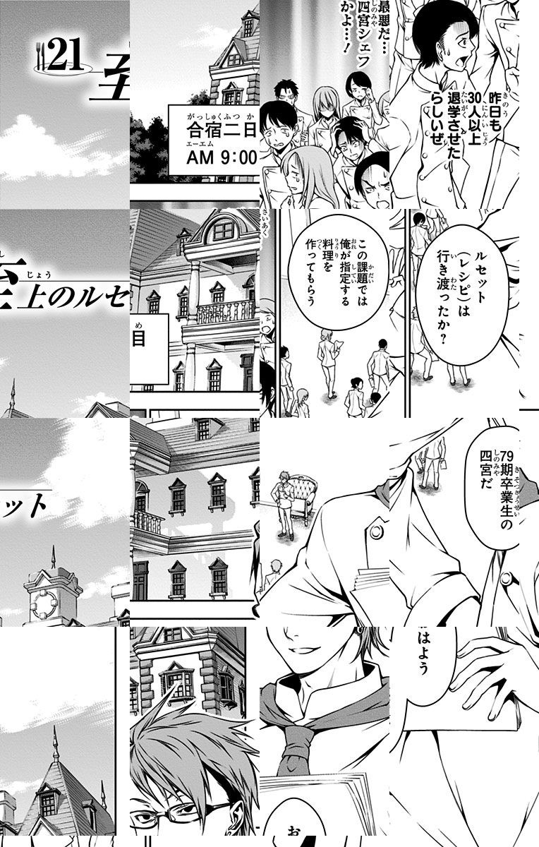 <完結済み>下町の定食屋を営む中学生・幸平創真。目標である料理人の父を越える為、創真は修業の毎日を送っていた。しかし突然、料理学校への編入話を告げられ…!? 創造する新料理マンガ、ここに開演!!