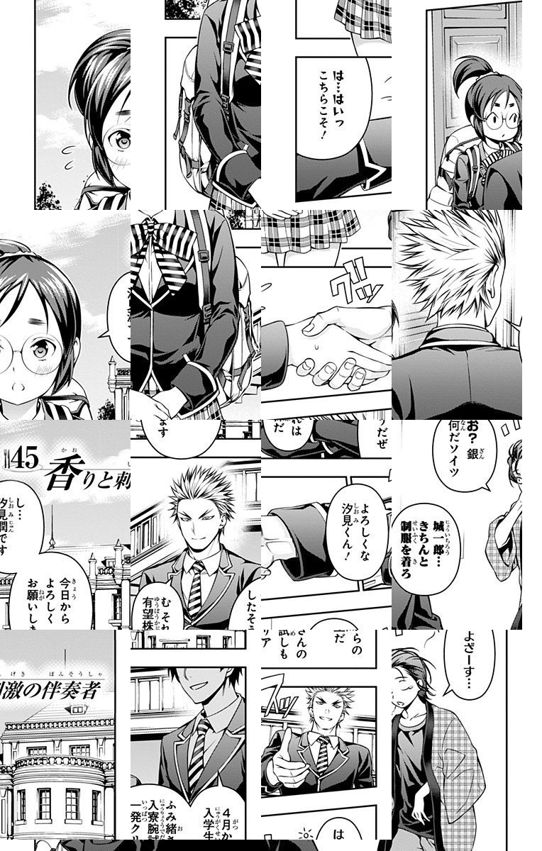 <完結済み>下町の定食屋を営む中学生・幸平創真。目標である料理人の父を越える為、創真は修業の毎日を送っていた。しかし突然、料理学校への編入話を告げられ…!? 創造する新料理マンガ、ここに開演!!