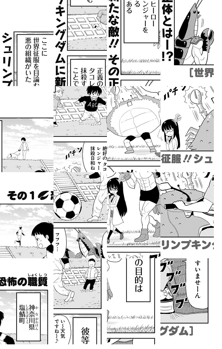 <完結済み>博士も怪人もポンコツな上に、貧乏でお人好し…。世界征服なんか絶対できない悪の組織“シュリンプキングダム”の普通の日常を描いた、ほんわか・おバカコメディー。こんな悪の一味、近所にいたら友達になれそうザーリザーリィ! [JC発売中]