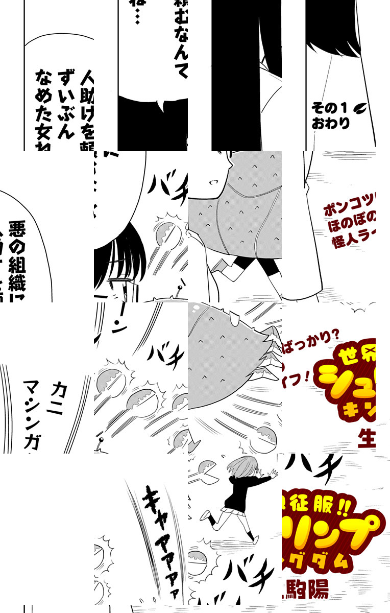 <完結済み>博士も怪人もポンコツな上に、貧乏でお人好し…。世界征服なんか絶対できない悪の組織“シュリンプキングダム”の普通の日常を描いた、ほんわか・おバカコメディー。こんな悪の一味、近所にいたら友達になれそうザーリザーリィ! [JC発売中]