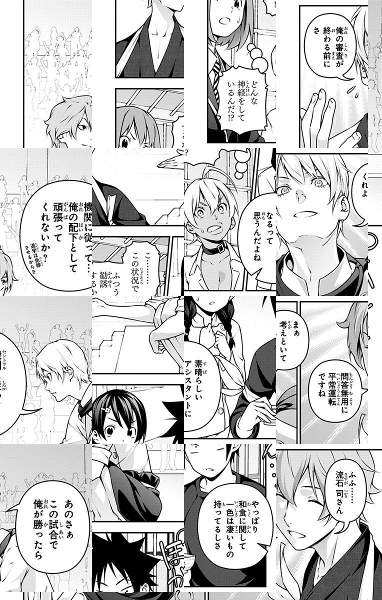 <完結済み>下町の定食屋を営む中学生・幸平創真。目標である料理人の父を越える為、創真は修業の毎日を送っていた。しかし突然、料理学校への編入話を告げられ…!? 創造する新料理マンガ、ここに開演!!