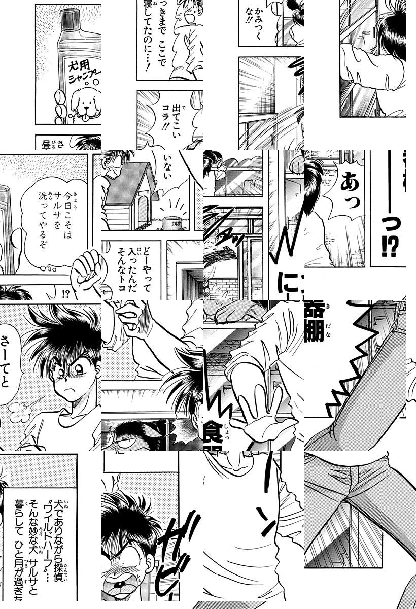<完結済み>不思議な犬の名探偵!! その正体は言葉を話す奇妙な犬=サルサだった!? どんな事件でも解決するという謎多き探偵「ワイルドハーフ」とは俺なのだ!! 俺が出会った高校生・健人はお人好しだが優しい心の“匂い”の持ち主。ほっとけないからしばらくあいつの家にいてやるのだ。けっして骨付き肉につられたわけじゃないぞ!! さて事件だ!!
