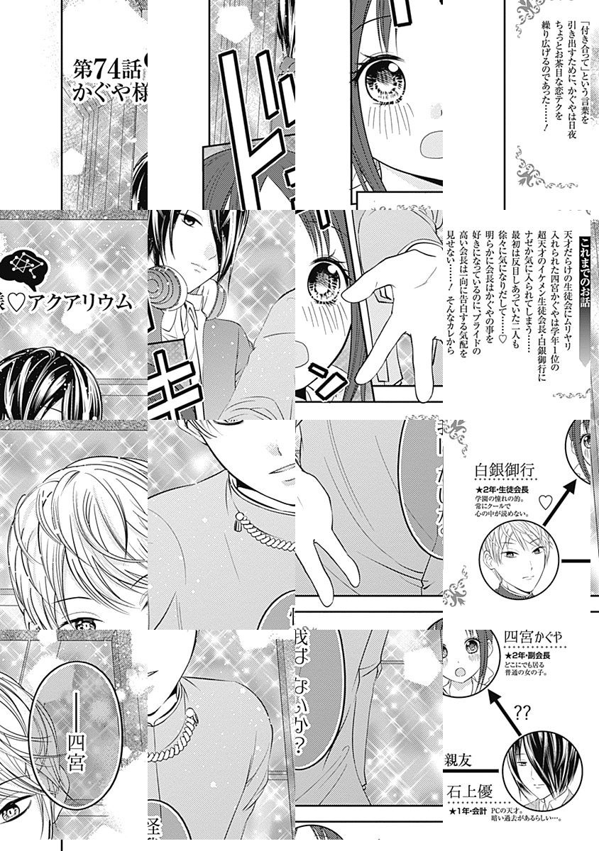 <完結済み>「恋愛は告白した方が負けなのである!」 家柄も人柄も良し!! 将来を期待された秀才が集う秀知院学園!! その生徒会で出会った、副会長・四宮かぐやと会長・白銀御行は互いに惹かれているはずだが…何もないまま半年が経過!! プライドが高く素直になれない2人は、面倒臭いことに、“如何に相手に告白させるか”ばかりを考えるようになってしまった!? 恋愛は成就するまでが楽しい!!