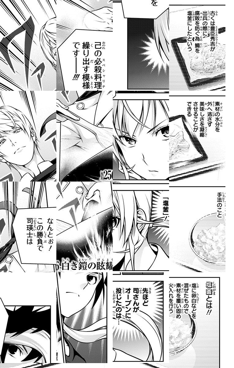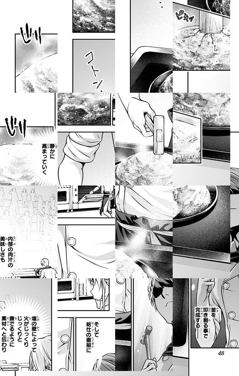 <完結済み>下町の定食屋を営む中学生・幸平創真。目標である料理人の父を越える為、創真は修業の毎日を送っていた。しかし突然、料理学校への編入話を告げられ…!? 創造する新料理マンガ、ここに開演!!