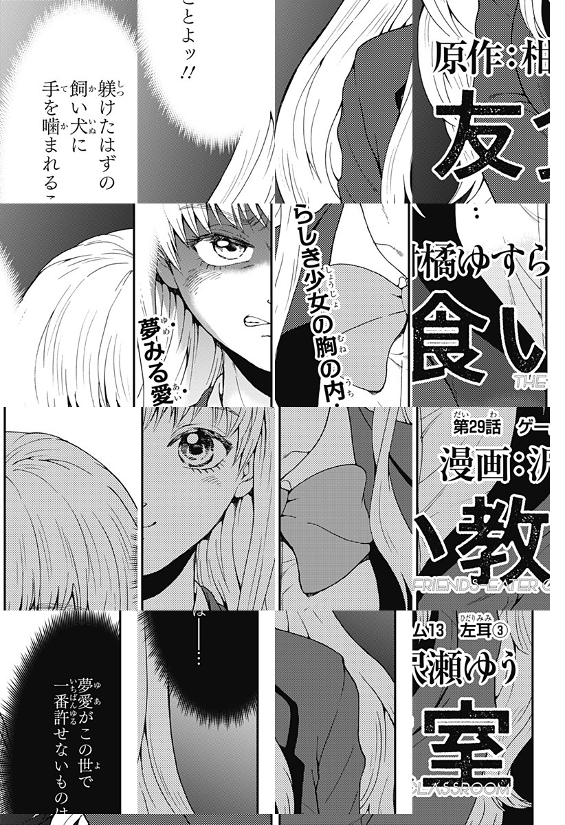 <完結済み>桜坂高校1−Aの生徒たちは、『友食いゲーム』と呼ばれる理不尽なゲームに巻き込まれる。生き残る条件は、友達の身体を食べること——!?戦慄のカニバリズム学園ホラー開幕!! [JC全4巻発売中]