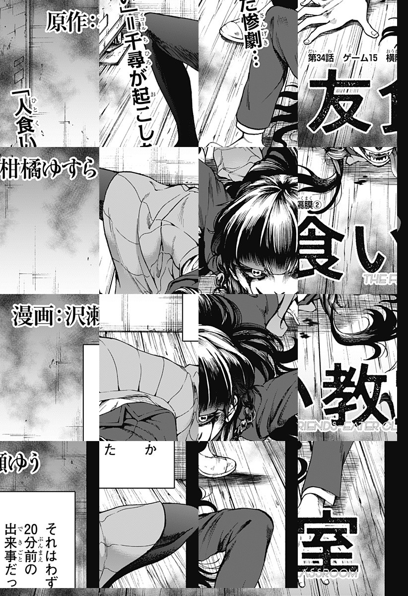 <完結済み>桜坂高校1−Aの生徒たちは、『友食いゲーム』と呼ばれる理不尽なゲームに巻き込まれる。生き残る条件は、友達の身体を食べること——!?戦慄のカニバリズム学園ホラー開幕!! [JC全4巻発売中]