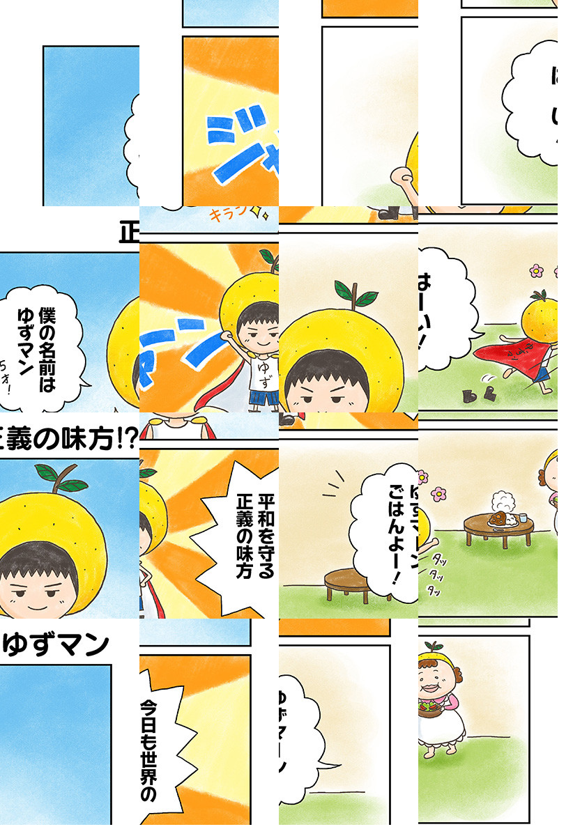 <完結済み>日本のポップミュージックの一線を走り続けるデュオ「ゆず」の北川悠仁が、子供のころからの夢だった「マンガ家」に!!ヒーローを目指す5歳児「ゆずマン」と、彼を取り巻く家族や友達とのほのぼの日常4コマ!