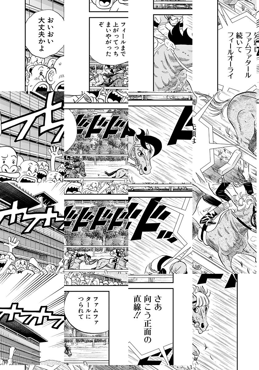 <完結済み>G1馬、高知へ凱旋!! マキバオーが帝王賞でダートの頂点に立った少し前、ダービーでも奇跡の勝利を果たした牝馬がいた。彼女の名はファムファタール。なんと彼女は、続けて宝塚記念、そして凱旋門賞を目指すという。しかしそれは、ケガから復活したフィールオーライと同じ道だった……! 新旧の怪物が、宝塚記念で激突する!!
