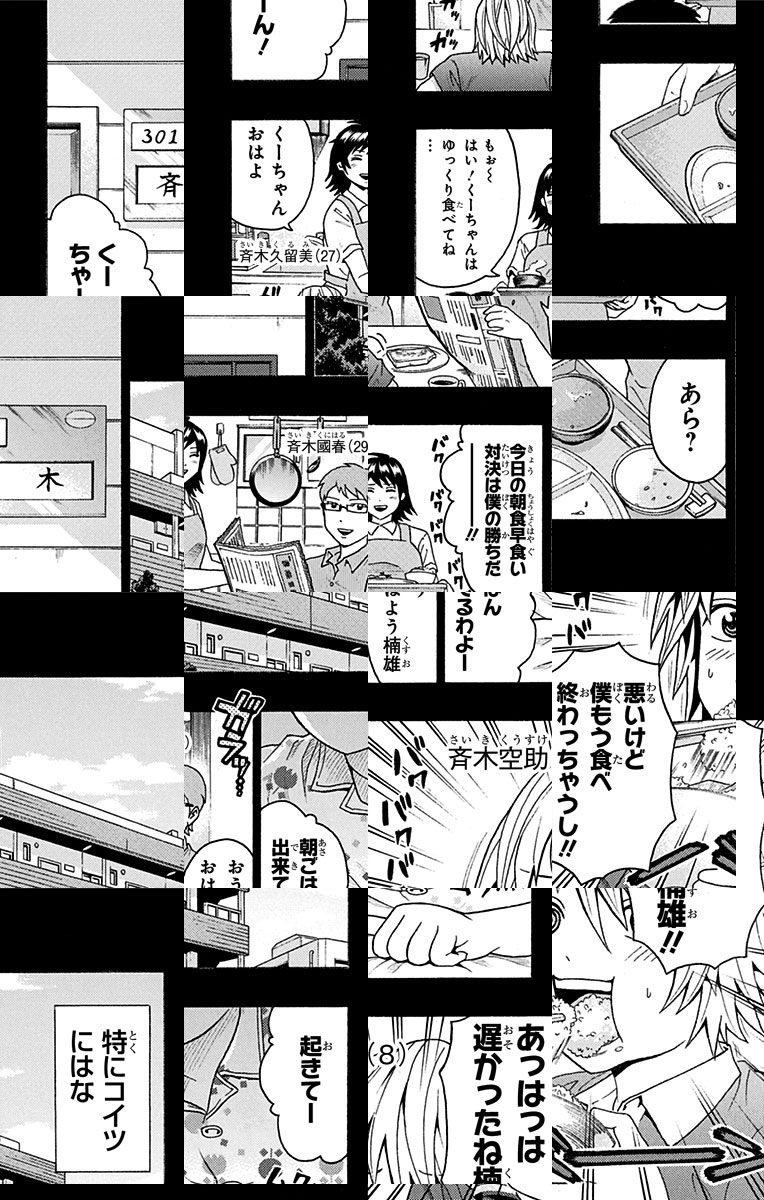<完結済み>彼の名前は斉木楠雄、超能力者である。誰もが羨む才能も、本人にとっては災難を呼ぶ不幸の元凶。故に人前では力を封印、目立たず人と関わらずを心掛けてきた斉木だったが、何故かワケあり同級生が急接近!?