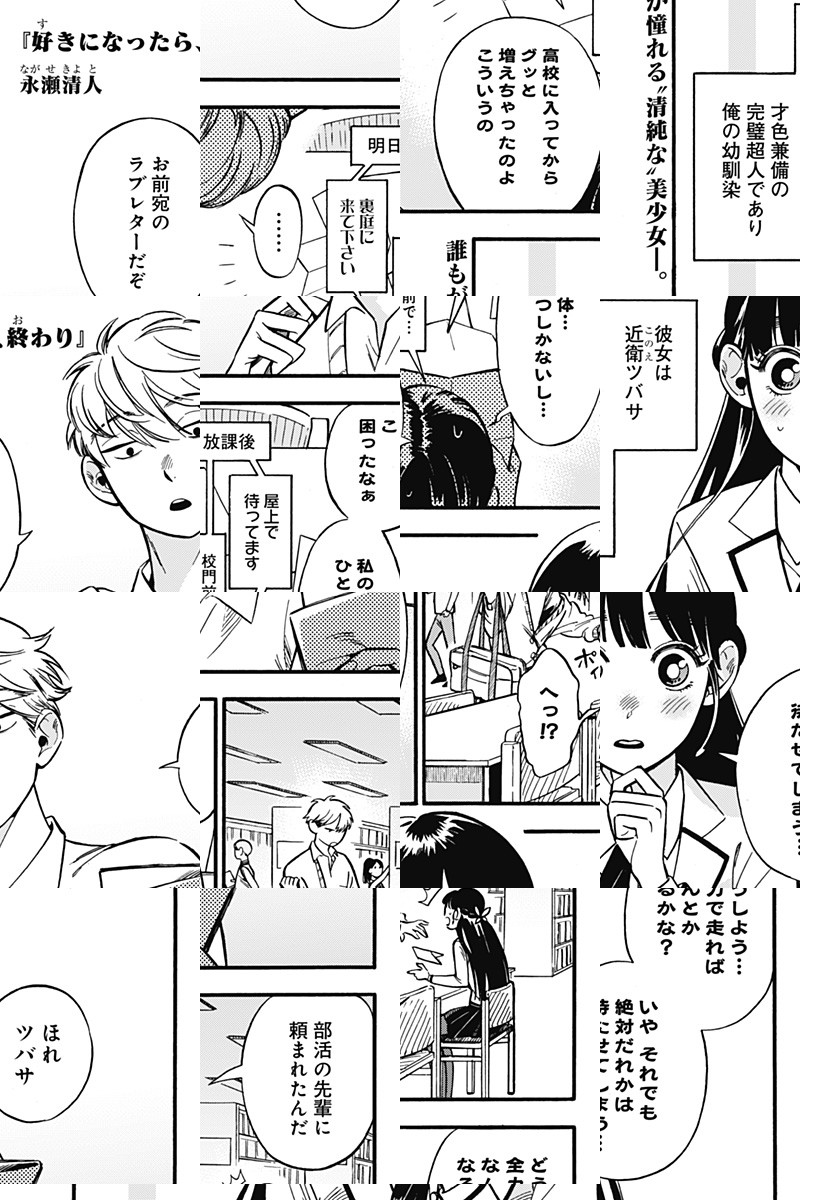 期待の新鋭、ジャンプ+に初参戦!!眉目秀麗、才色兼備、非の打ち所がない、清楚系幼なじみ…。全男子憧れの的、近衛ツバサは今日も男子からの告白をお断り。だって、彼女が惹かれるのは、“特別”な人だけだから—。 恋する少女に絡めとられる、『好きになったら、終わり』なショート読切5P。