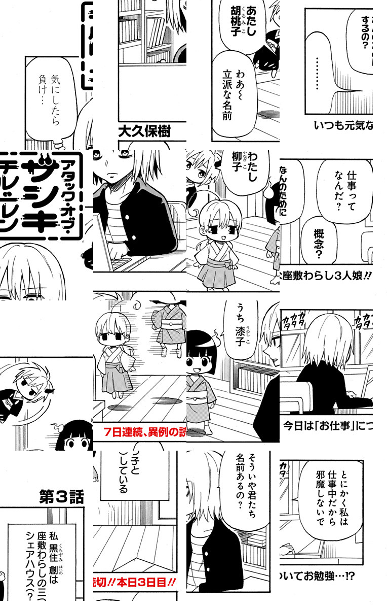 作家の黒住は幽霊屋敷と噂の家に引っ越す事になったのだが、そこには取り憑いた家に幸福をもたらす“座敷わらし”が住み着いており…!?可愛いようでけっこう過激!?座敷わらし三姉妹と幸薄作家とのゆるカワ日常コメディ、異例の7日連続配信!!