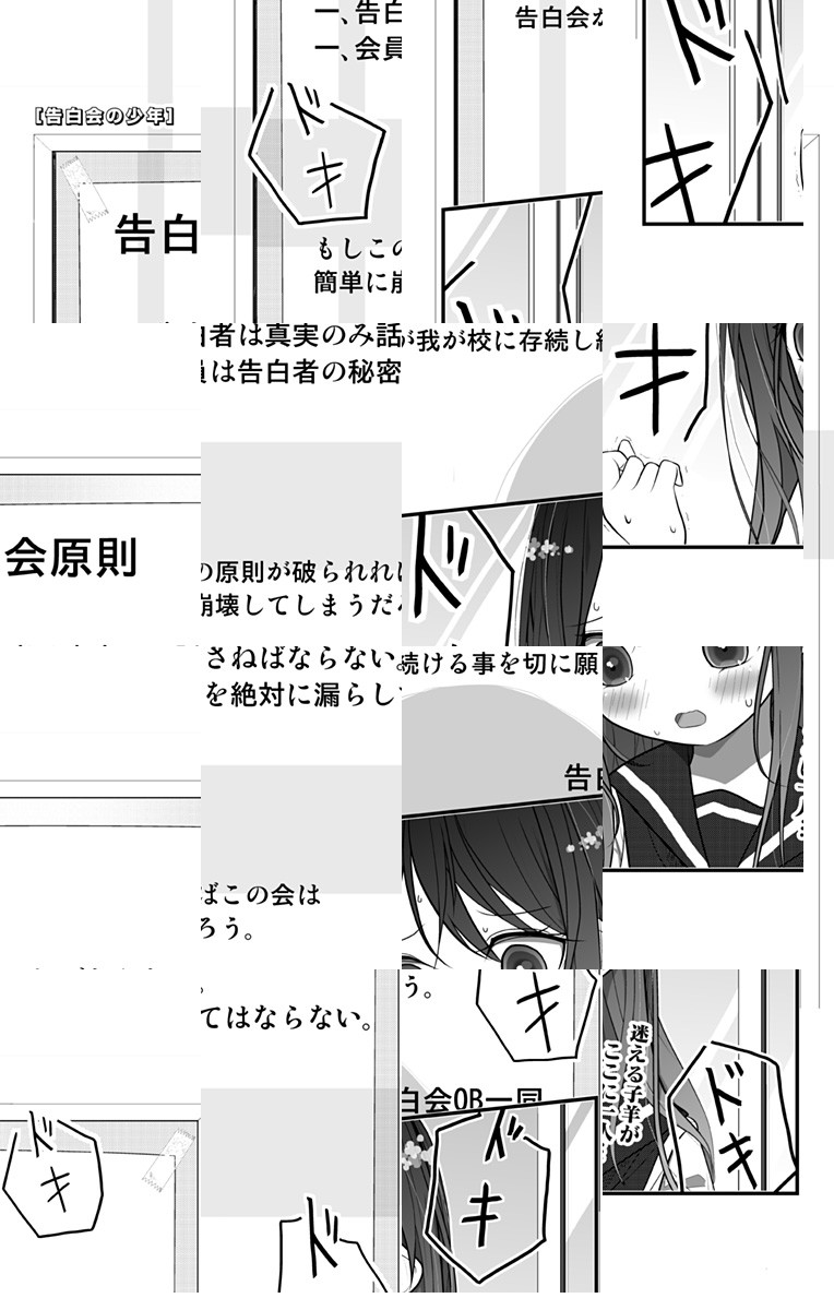 真実のみを話さなければならない、そしてその秘密を漏らしてはいけない、告白会の部屋…。明かされる、衝撃の秘密とは…!?新時代学園コメディ…!!