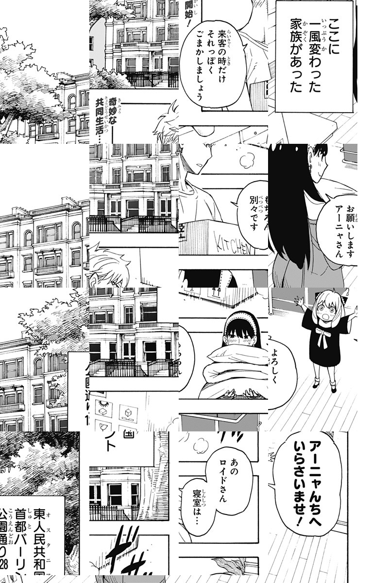 <隔週月曜更新!最新2話無料>TVアニメ 各動画サイトにて配信中 凄腕スパイ<黄昏>は、より良き世界のため日々、諜報任務にあたっていた。ある日、新たな困難な司令が下る――…。任務のため、仮初めの家族をつくり、新生活が始まるのだが!?スパイ×アクション×特殊家族コメディ! [JC16巻発売中]