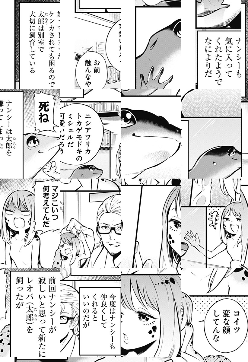 <完結済み>爬虫類を愛するがゆえに、日夜爬虫類を研究する爬虫類研究家の葉中ルイ。彼が溺愛するレオパのナンシーが、ある日、脱皮をしたら、なんかめちゃくそ可愛くなって…!? [JC全3巻発売中]