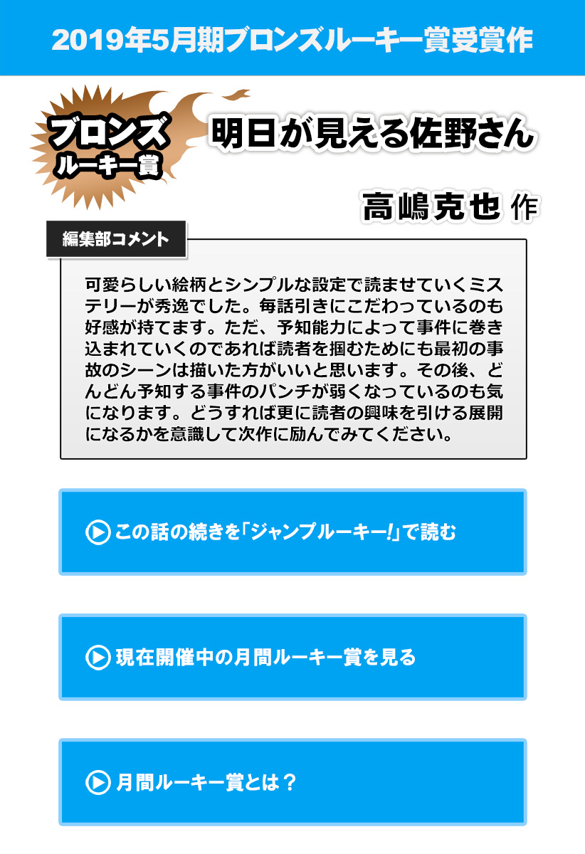 明日が見える佐野さん/2019年5月期ブロンズルーキー賞