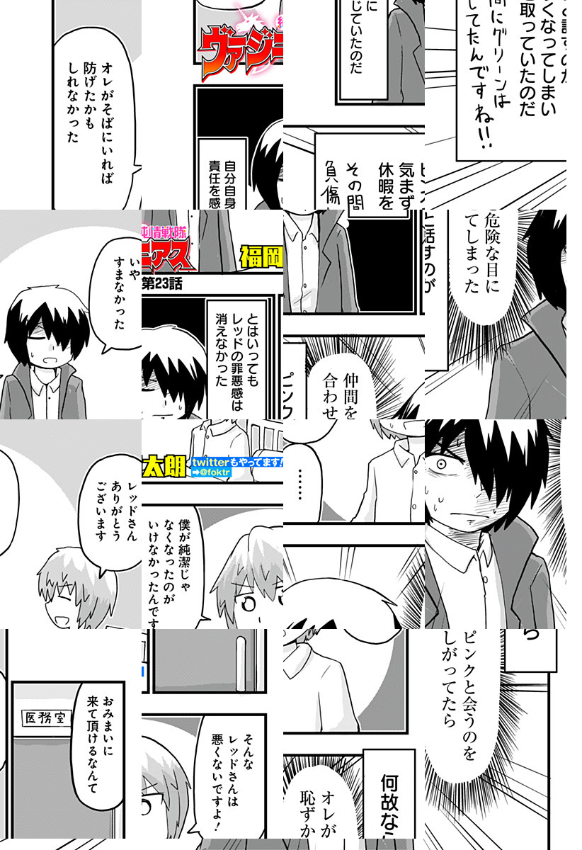 <完結済み>純情戦隊ヴァージニアス。純潔である事で強大な力を得るヒーロー戦隊。ゆえに彼らは恋を知らない少年少女達である。…レッド一人を除いて……。 [デジタル版JC全5巻発売中]