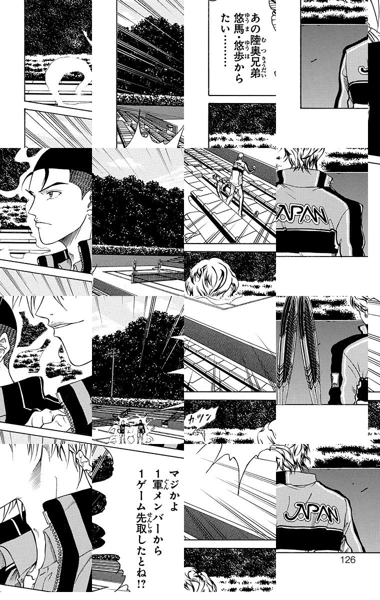 中学テニス全国大会で激闘を広げた猛者たち。その中の50人が、高校日本代表合宿に呼ばれた!! しかし、その中にリョーマの姿が見当たらない!! リョーマは一体どこへ!?