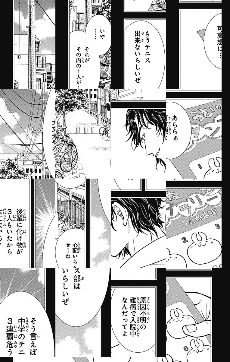 中学テニス全国大会で激闘を広げた猛者たち。その中の50人が、高校日本代表合宿に呼ばれた!! しかし、その中にリョーマの姿が見当たらない!! リョーマは一体どこへ!?