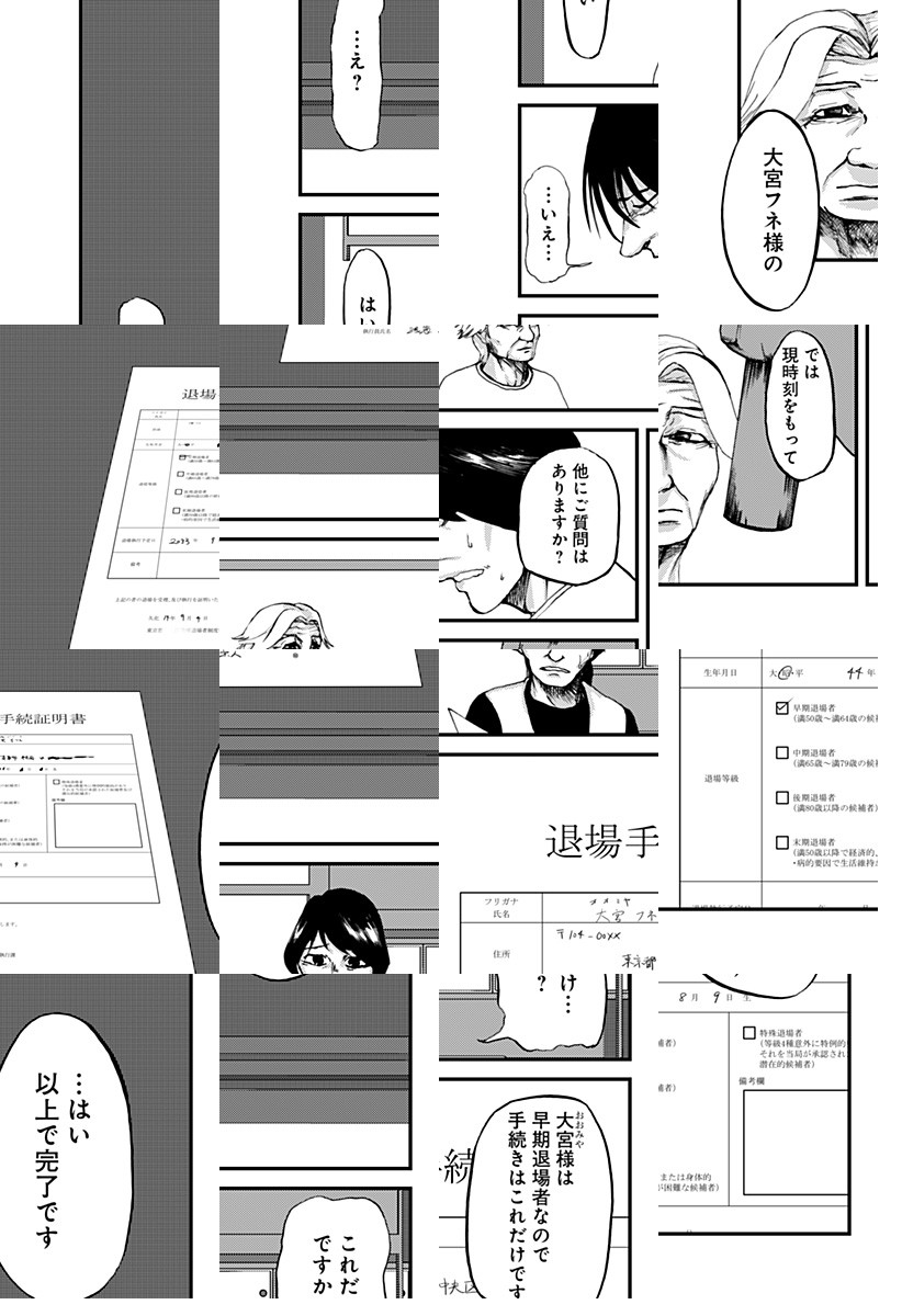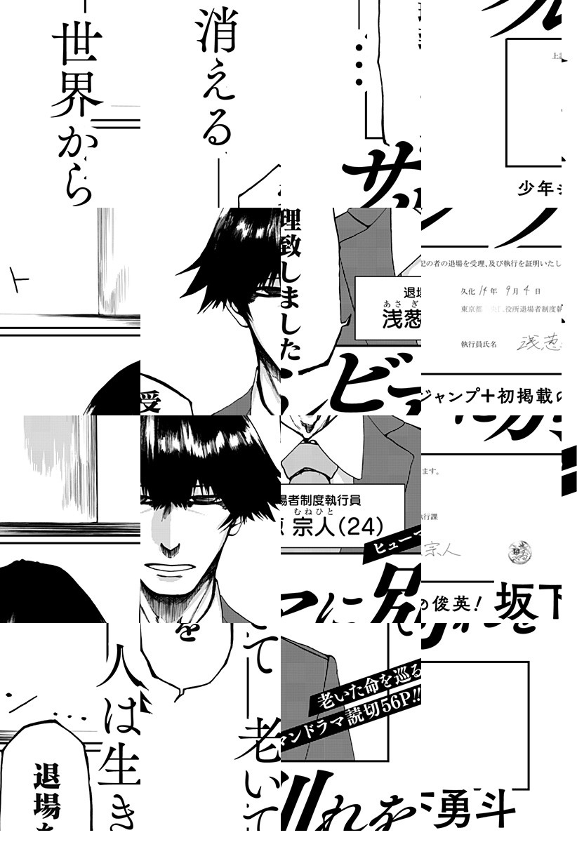 「託そう次へ なくそう衰え」老いた人間を”退場”させることが認められるようなった国。退場執行員の主人公はある日、予想だにしない相手を退場させなければならなくなったが・・・。