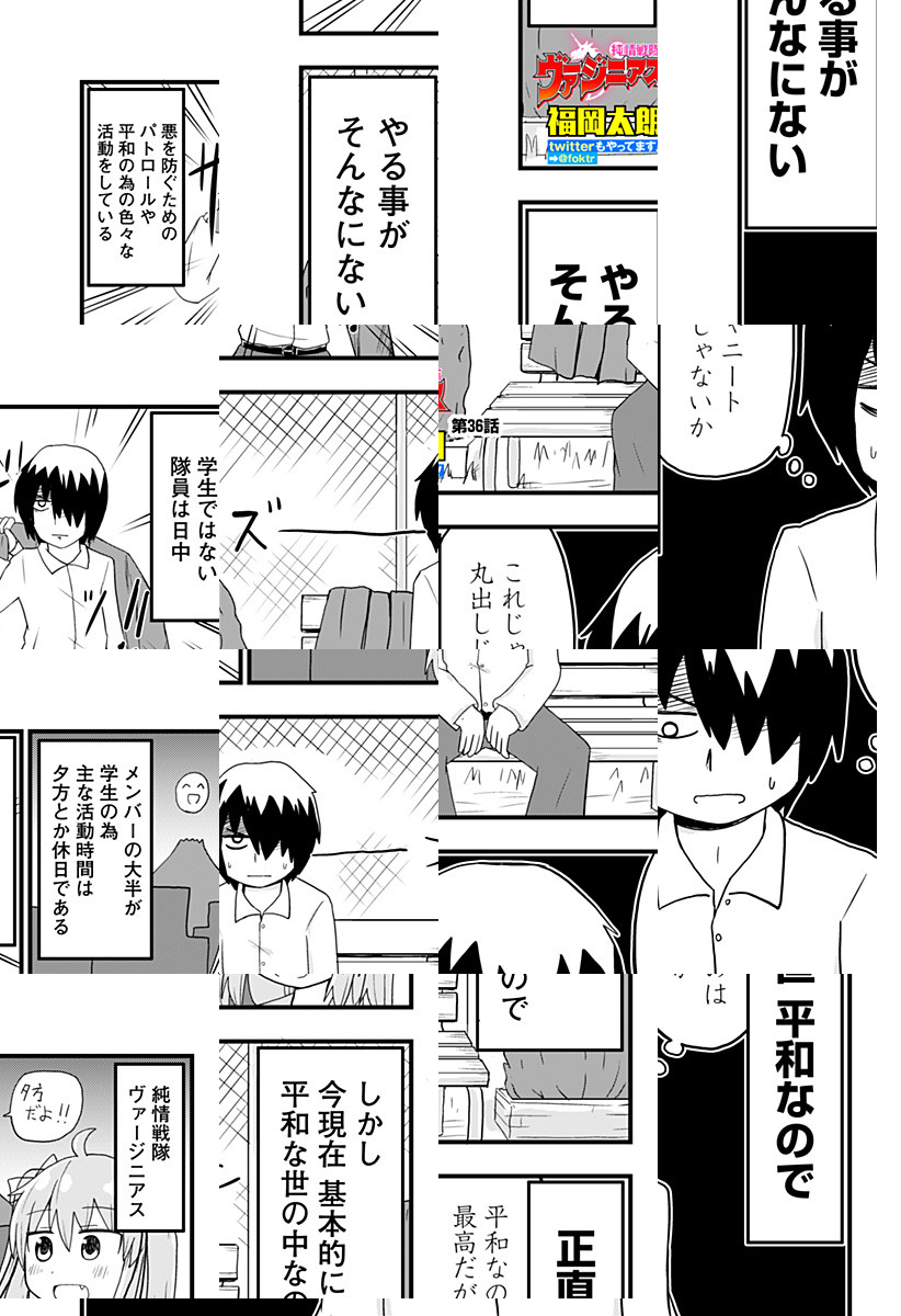 <完結済み>純情戦隊ヴァージニアス。純潔である事で強大な力を得るヒーロー戦隊。ゆえに彼らは恋を知らない少年少女達である。…レッド一人を除いて……。 [デジタル版JC全5巻発売中]