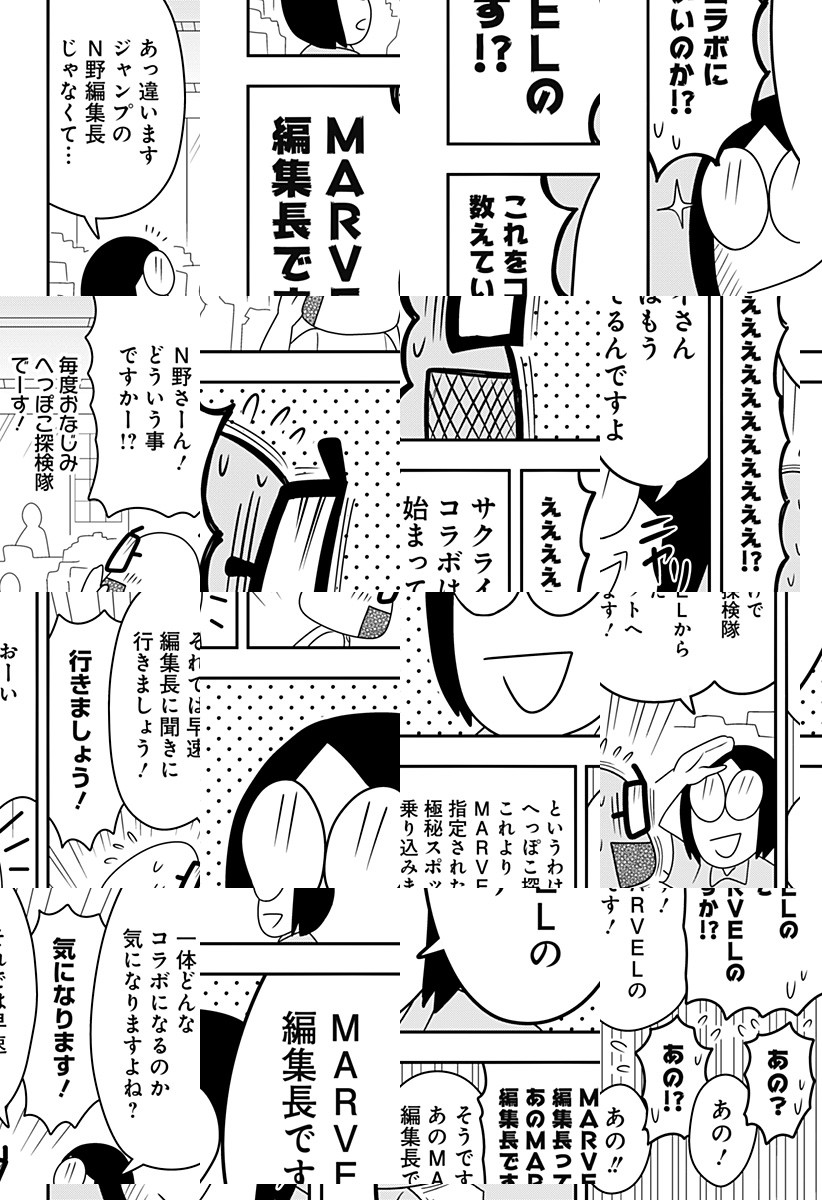 このマンガは少年ジャンプにちなんだ面白そうなことをやってみよう!という探検的ルポマンガです。世界で大ヒットを続出しているMARVELの編集長にジャンプとのコラボについて突撃インタビューを敢行!