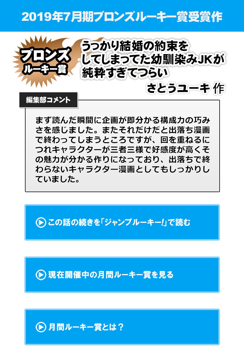 うっかり結婚の約束をしてしまってた幼馴染みJKが純粋すぎてつらい/2019年7月期ブロンズルーキー賞