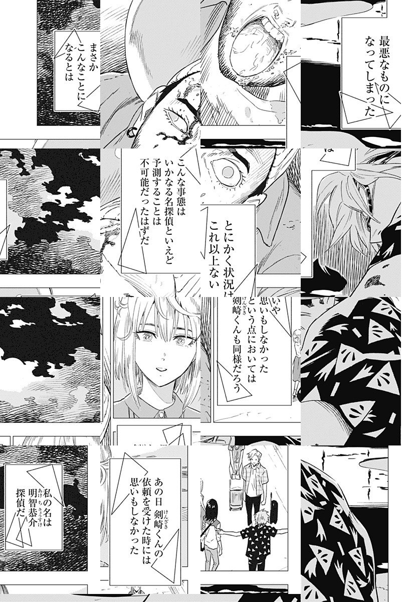 <完結済み>「神紅のホームズ」こと神紅大学三回生の明智恭介は、学内で起こる様々な事件を解決していた。明智はある日、同じ大学の探偵少女・剣崎比留子の相談を受け、いわくつきの映画研究会合宿に参加することになり…。 [JC全4巻発売中]
