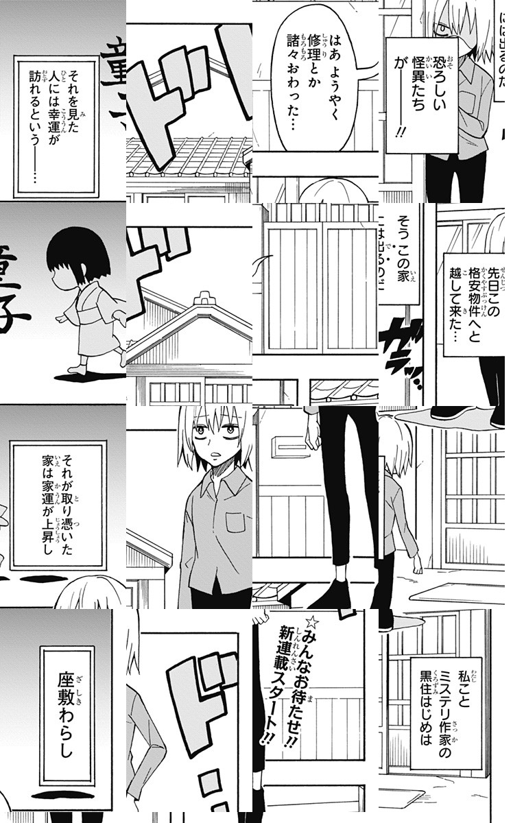 <完結済み>ミステリ作家の黒住は幽霊屋敷と噂の家に住むことになったのだが、そこには可愛い3人の先客がおり…!?読切で大好評だったあの可愛くてけっこー残虐な座敷わらしたちが帰ってきた!!週2回(火曜・土曜)配信のゆるカワ座敷わらしコメディ!! [デジタル版JC発売中]