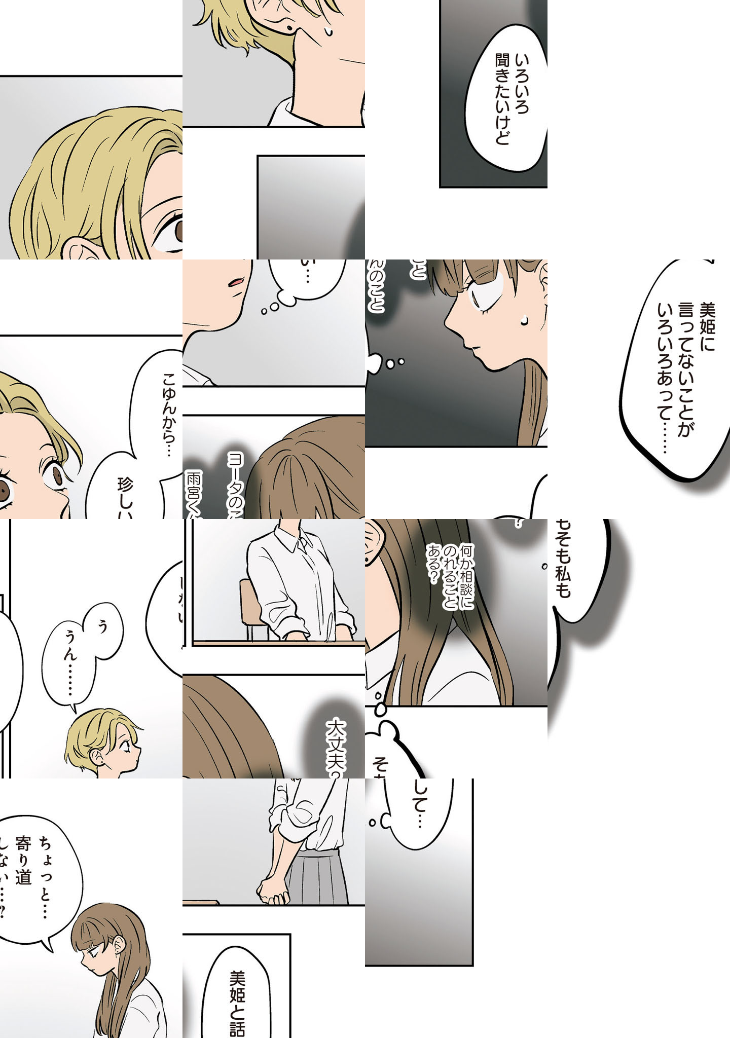 <完結済み>人と接するのが苦手で、他人との間を壁で隔ててしまう氷川小雪。高校では誰ともつるまずに1人で過ごしていたけど、なぜかぐいぐい距離を詰めてくる雨宮ミナトと出会い――? 孤高の女子・小雪、学校の人気者・美姫、距離ナシ男子・ミナト、のんびり優しい雰囲気のヨータ。どこかちょっとこじれた4人の、もどかしい青春混線ストーリー!