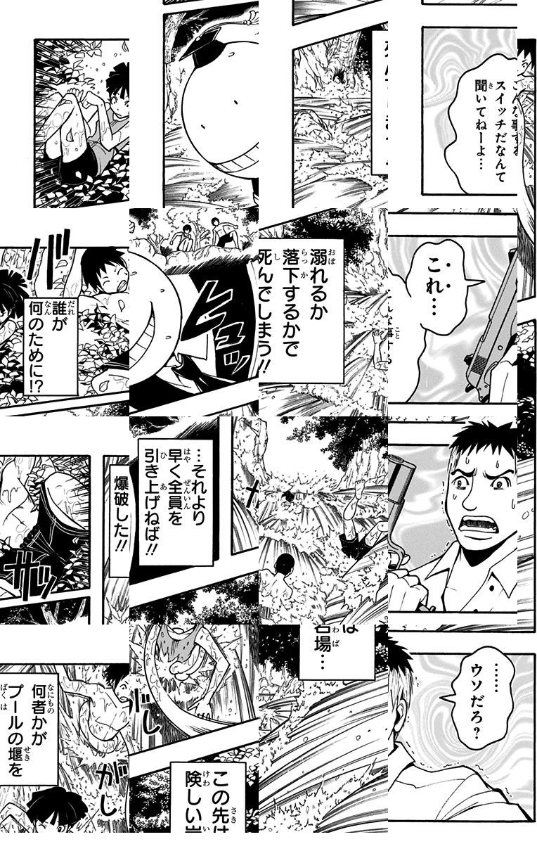 <『劇場版「暗殺教室」みんなの時間』公開記念!!57話分無料!>※一挙公開!キャンペーン期間:4/5まで※ <完結済み>号令と共に教室を満たす銃声! 椚ヶ丘中学校3年E組は生徒全員が先生の命を狙う暗殺教室。教師と生徒、標的と暗殺者の異常な日常が始まる——!!