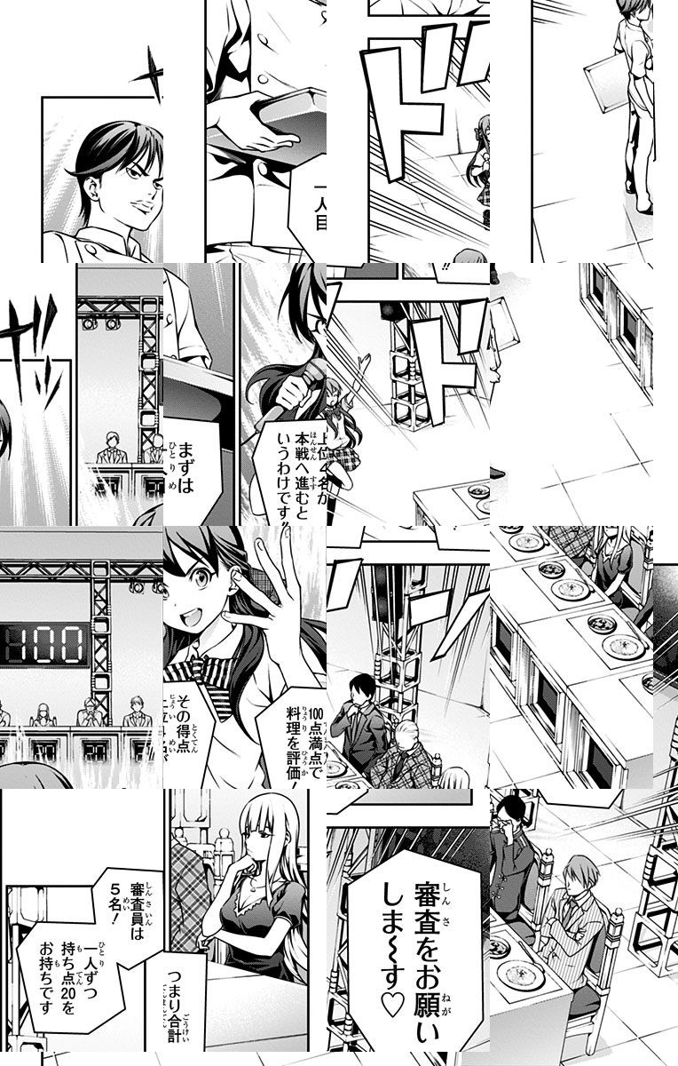<完結済み>下町の定食屋を営む中学生・幸平創真。目標である料理人の父を越える為、創真は修業の毎日を送っていた。しかし突然、料理学校への編入話を告げられ…!? 創造する新料理マンガ、ここに開演!!