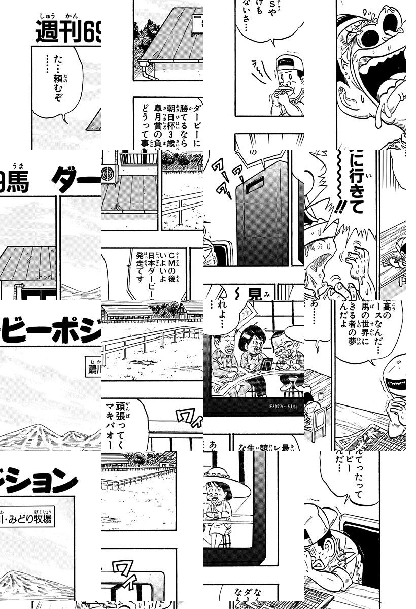 <完結済み>日本競馬史上、かつてない珍馬・珍獣が出現。体は小さいが走るのは速い、犬の様な白毛馬、みどり牧場一の競走馬ミドリマキバオー!! 意気揚揚と新馬戦に臨もうとするが、華々しいデビューを飾れるか…!? 競馬界に旋風を巻き起こせ!!