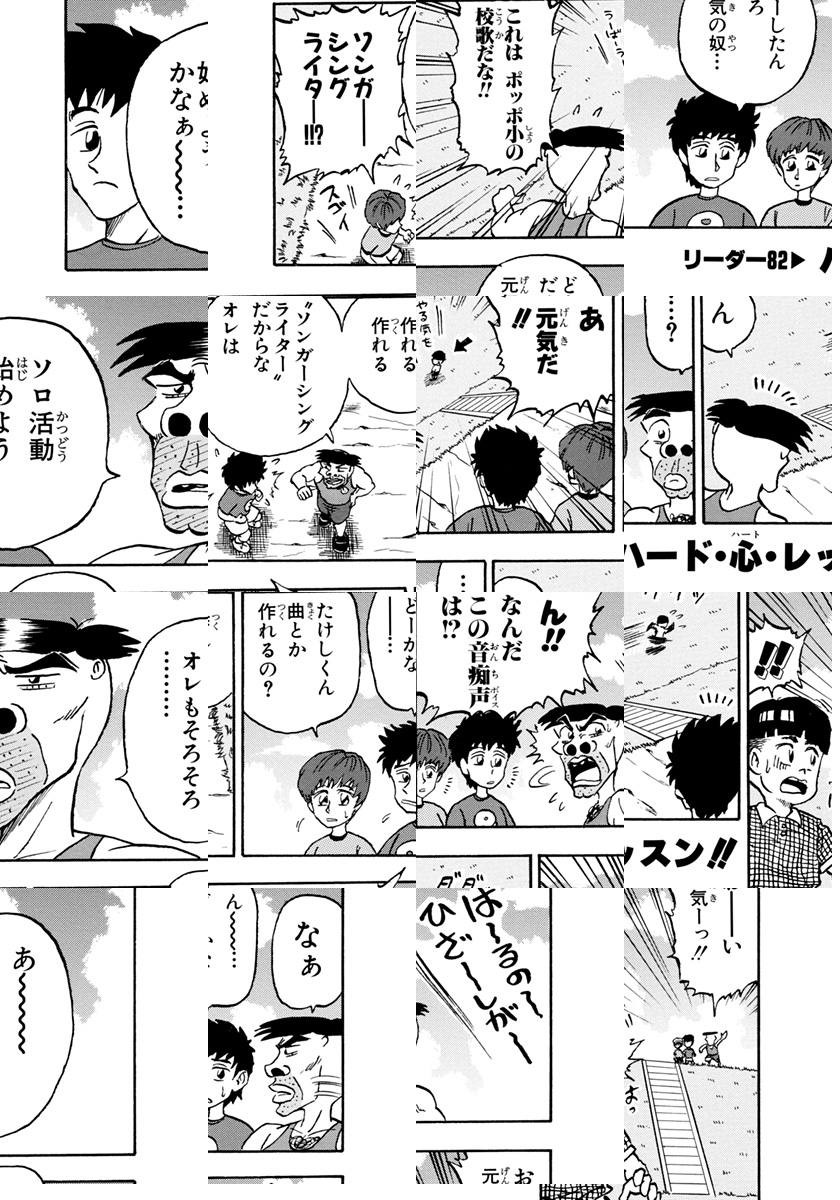 <完結済み>ポッポ小学校に入学したたけしは生まれ持った熱きリーダー魂とオッサン顔で、たちまち町中にその名をとどろかす。友達のピンチ、悪人の襲来、ダンディコンテスト、学園祭、遠足…誰かが困ったときに必ず解決してくれる、まさにリーダー的存在なのだ!
