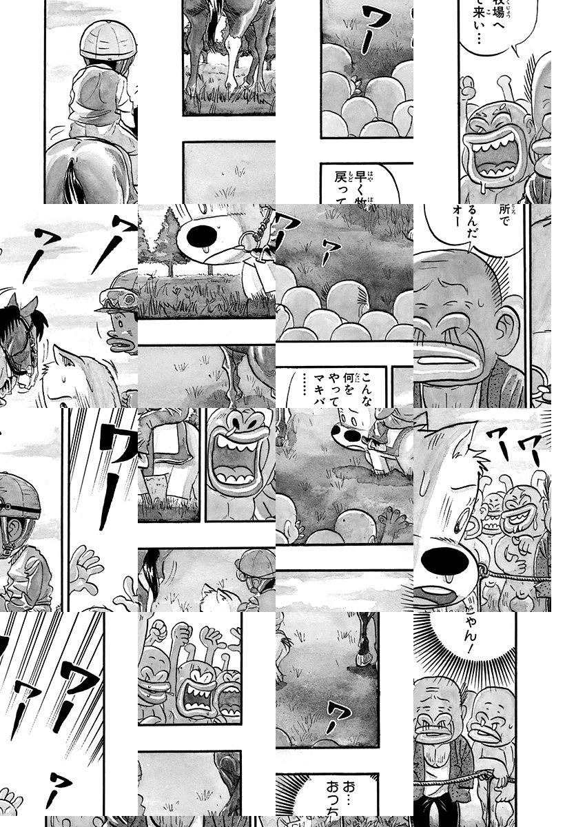 <完結済み>日本競馬史上、かつてない珍馬・珍獣が出現。体は小さいが走るのは速い、犬の様な白毛馬、みどり牧場一の競走馬ミドリマキバオー!! 意気揚揚と新馬戦に臨もうとするが、華々しいデビューを飾れるか…!? 競馬界に旋風を巻き起こせ!!