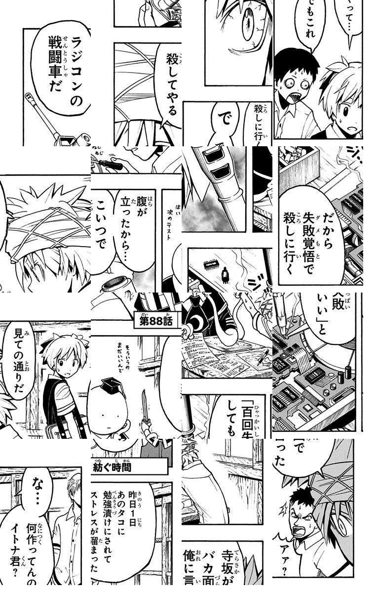 <完結済み>号令と共に教室を満たす銃声! 椚ヶ丘中学校3年E組は生徒全員が先生の命を狙う暗殺教室。教師と生徒、標的と暗殺者の異常な日常が始まる——!!