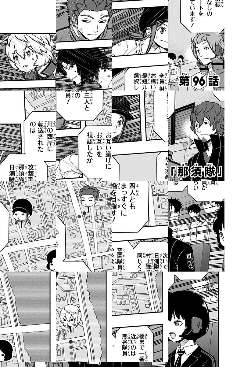 異次元からの侵略者「近界民」の脅威にさらされている三門市。そこに住む少し正義感の強い中学生・三雲修は、謎の転校生・空閑遊真と出会う。遊真の行動に振り回される修の運命は!? 最新型SFアクション始動!!