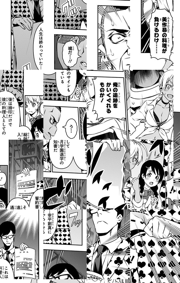 <完結済み>下町の定食屋を営む中学生・幸平創真。目標である料理人の父を越える為、創真は修業の毎日を送っていた。しかし突然、料理学校への編入話を告げられ…!? 創造する新料理マンガ、ここに開演!!