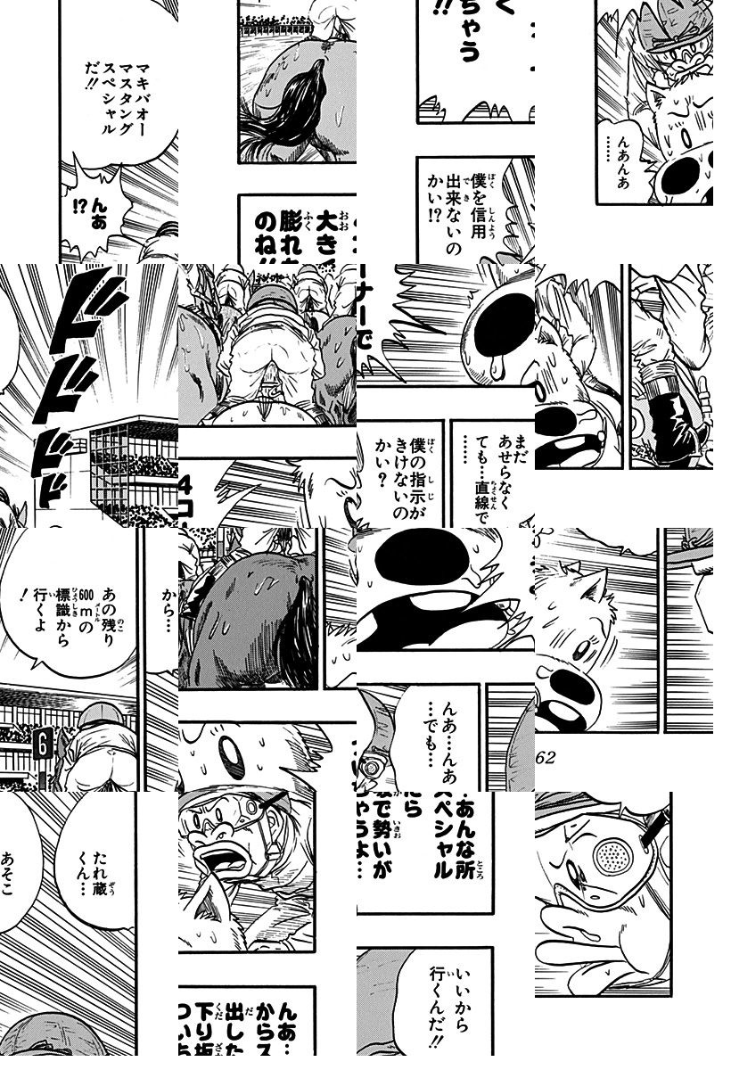 <完結済み>日本競馬史上、かつてない珍馬・珍獣が出現。体は小さいが走るのは速い、犬の様な白毛馬、みどり牧場一の競走馬ミドリマキバオー!! 意気揚揚と新馬戦に臨もうとするが、華々しいデビューを飾れるか…!? 競馬界に旋風を巻き起こせ!!