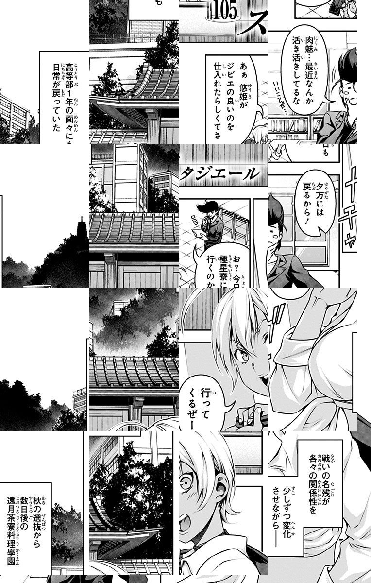 <完結済み>下町の定食屋を営む中学生・幸平創真。目標である料理人の父を越える為、創真は修業の毎日を送っていた。しかし突然、料理学校への編入話を告げられ…!? 創造する新料理マンガ、ここに開演!!