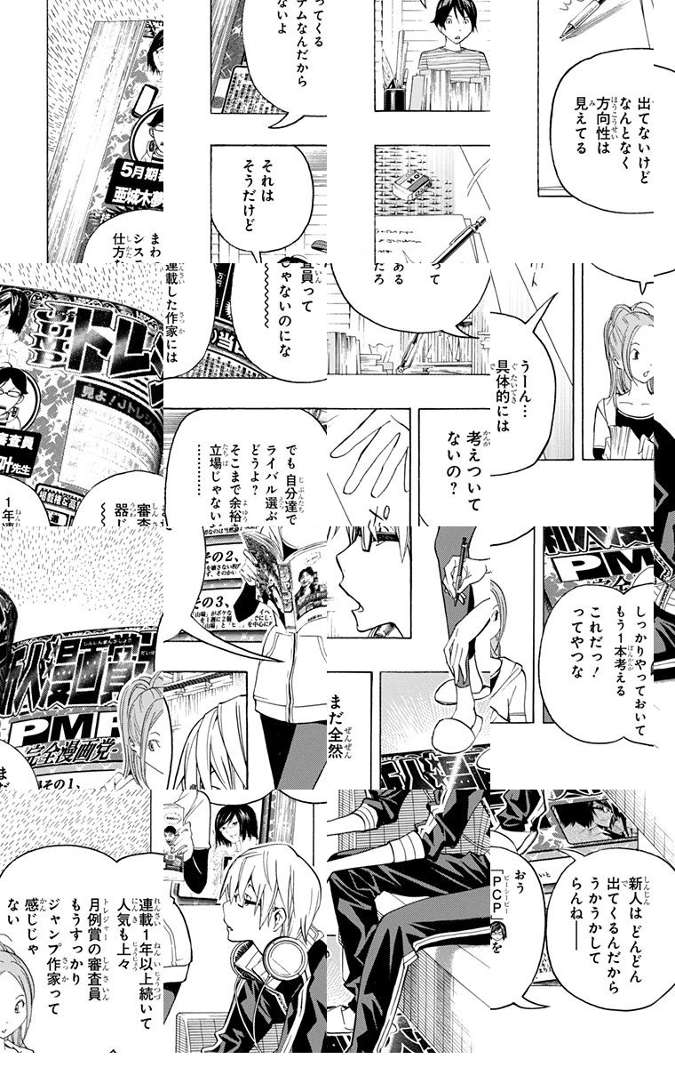 <完結済み>一握りの者にしか得られない栄光を手にするため、険しい“マンガ道”を歩む決意をした二人。高い画力を持つ真城最高と、文才に長ける高木秋人がコンビを組み、新たなマンガ伝説を創る!