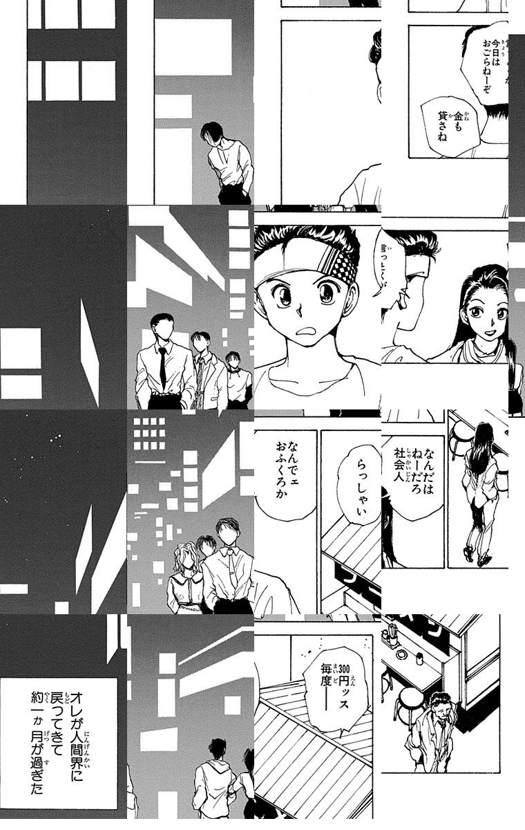 <完結済み>教師も手をやく不良の浦飯幽助。ある日子供を助けて事故にあい、幽霊になってしまう。予定外の死に閻魔大王は、生き返るための試練として、人の心を映す霊界獣の卵をかえすことを命じるが…!