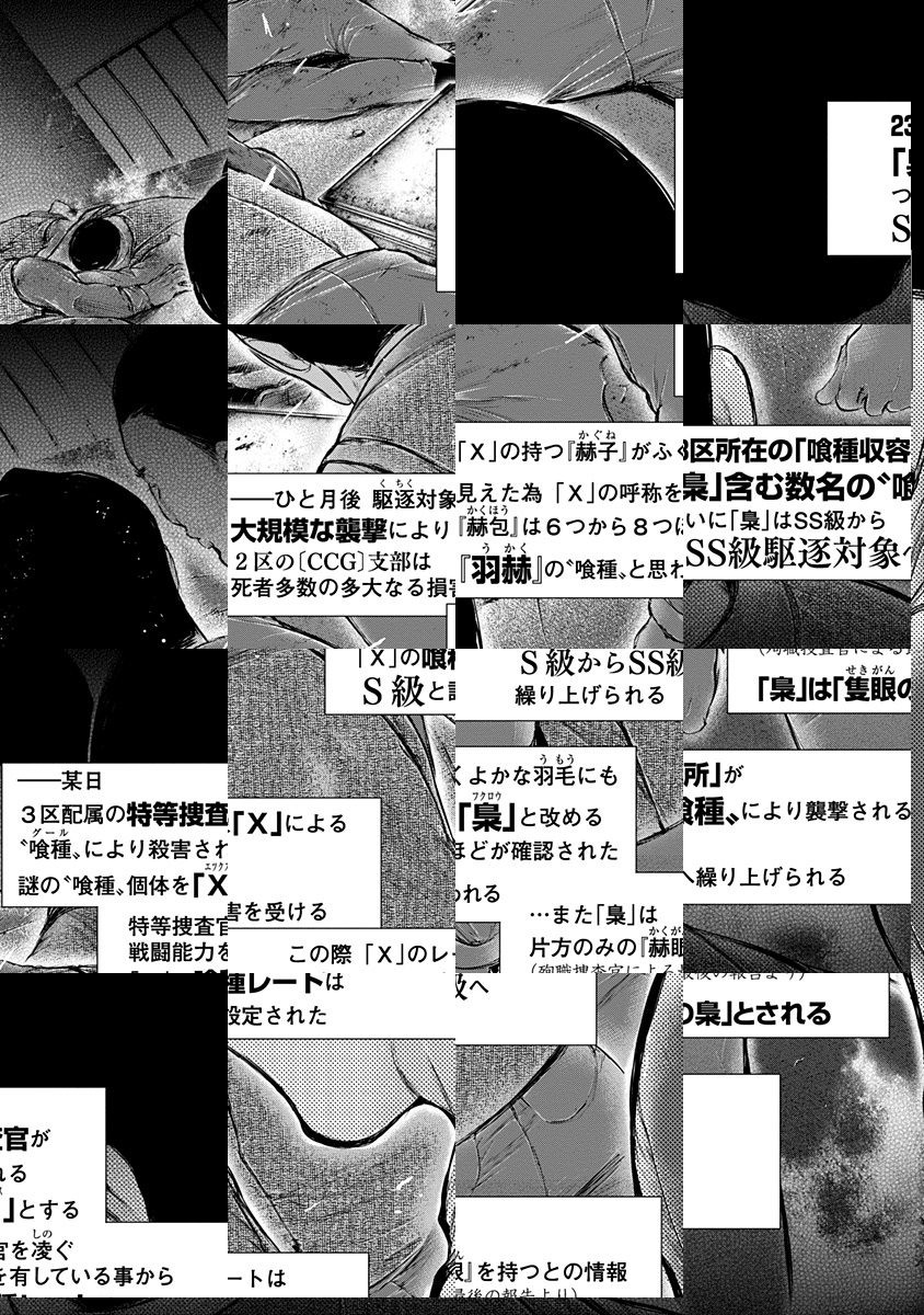 <完結済み>“東京”には、或るひとつの「絶望」が潜む…。群衆に紛れ、人間を狩り、その死肉を喰す怪人、人はそれを「喰種(グール)」と呼ぶ。青年が怪人に邂逅したとき、数奇な運命が廻り始める──!