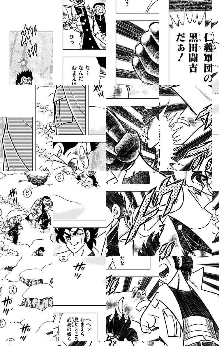 <完結済み>千葉、九十九里。13年ケンカ無敗を誇っていた菊川仁義は、渡米を前に太平洋を見に来ていた西日本の首領・武島将に初めて敗北を喫する。 鬼山に棲む喧嘩鬼との命がけの修業を乗り越えた仁義は、東京から千葉制圧にきた闘吉連合のヘッド・黒田闘吉を力と器の大きさで圧倒! 仁義軍団の快進撃が始まる!! [JC全11巻発売中]