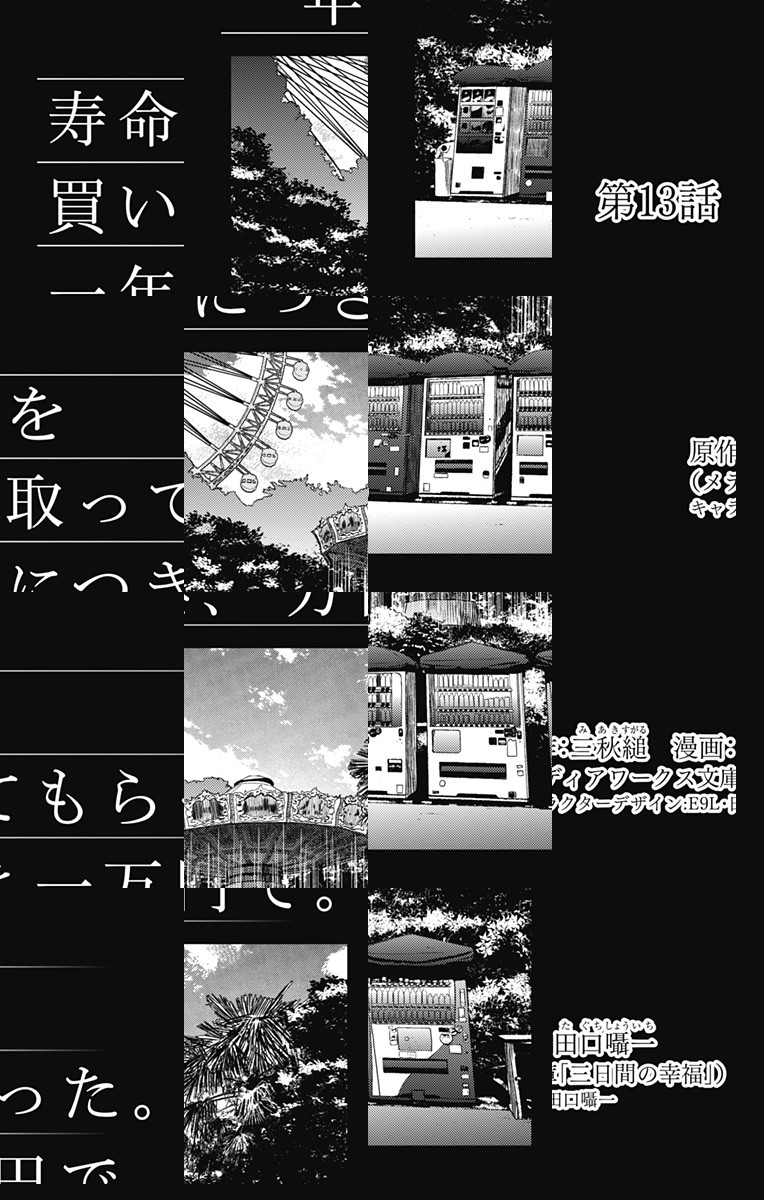 <完結済み>メディアワークス文庫の名作『三日間の幸福』、待望の漫画化! 未来を悲観した青年・クスノキは、寿命の大半を売り払い余命3ヶ月となるが!? [JC全3巻発売中]