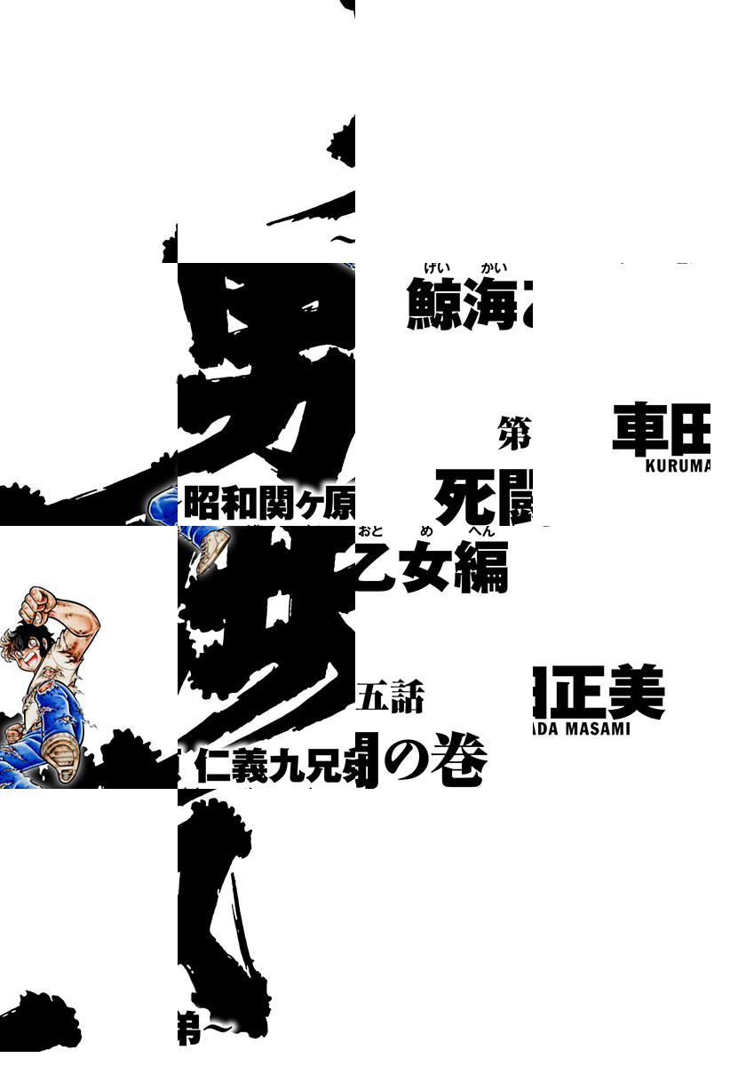 <完結済み>千葉、九十九里。13年ケンカ無敗を誇っていた菊川仁義は、渡米を前に太平洋を見に来ていた西日本の首領・武島将に初めて敗北を喫する。 鬼山に棲む喧嘩鬼との命がけの修業を乗り越えた仁義は、東京から千葉制圧にきた闘吉連合のヘッド・黒田闘吉を力と器の大きさで圧倒! 仁義軍団の快進撃が始まる!! [JC全11巻発売中]